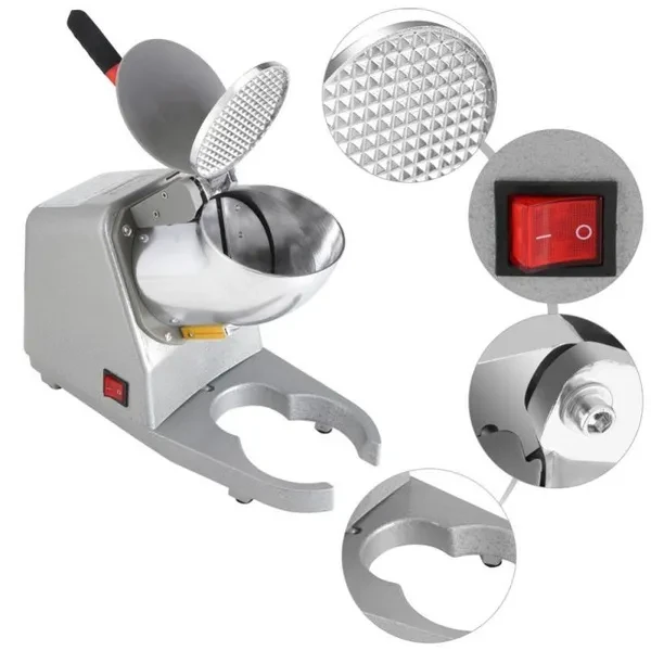 Description: This electric ice crusher is great to make troublesome big ice cubes into snow cone at ease. Aluminum alloy main body is easy to clean and rust resistant. Stable heavy cast ABS base adds extra stability. It features easy operation and fast crushing efficiency. Great for fast-food stores, cafe, school canteen, Features: The upgraded groove fits both tray and cup to contain shaved ices, more practical. With a drain pipe to avoid a wet working environment after use. It adopts double shaving blades, which greatly increases the crush efficiency and meets the demand of commercial use. Designed with an extra protective cover to protect users from splashing ice dice. The handle is covered with insulated rubber to ensure safe and non-slip operation. Specifications: Condition: 100% Brand New Material: ABS + Aluminum Alloy Color: Silver Gray Plug Type: US Plug/AU Plug Power: 110W Voltage: 110~240V Frequency: 50Hz Speed: 1350rpm Crushing Weight: 85kg/hr Total Height: approx. 29.5cm / 11.61inch Width: approx. 36cm / 14.17inch Length: approx. 16cm / 6.30inch Weight: approx. 5301g Package Included: 1 x Electric Ice Crusher 1 x Scoop 1 x Drain Pipe 1 x Stainless Steel Bowl Note: 1. Please allow 0-2cm error due to manual measurement. Thanks for your understanding. 2. Monitors are not calibrated same, item color displayed in photos may be showing slightly different from the real object. Please take the real one as standard.