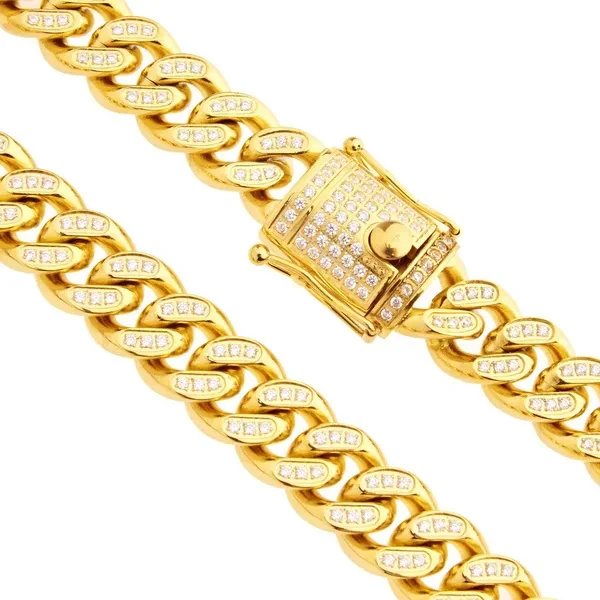 Iced Out Bling Stainless Steel Miami Cuban Chain - 14mm gold