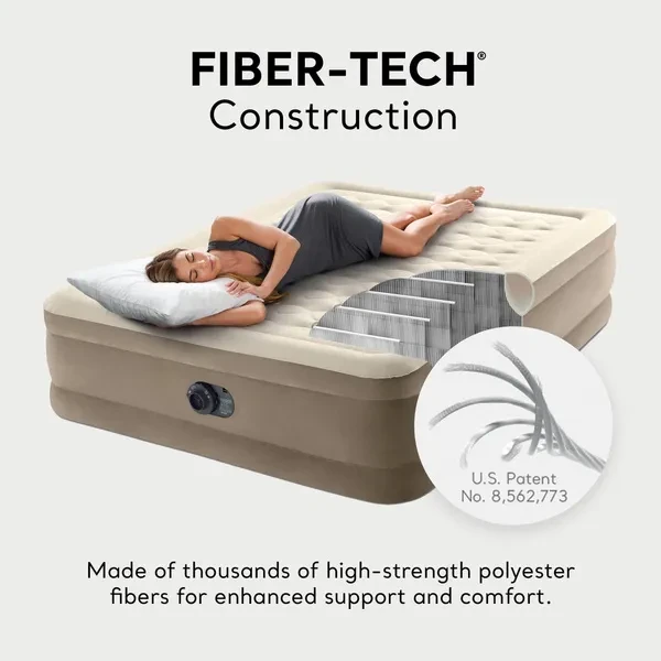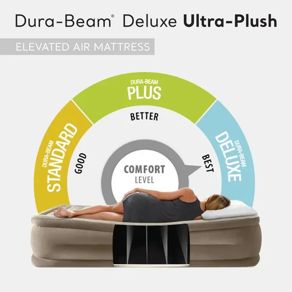 Intex Dura-Beam Deluxe Ultra Plush Air Mattress wBuilt-in Pump, Queen(Open Box)
