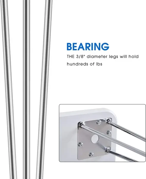 - [Modern Outdoor Dining Table]: The 3/8" diameter hairpin legs in raw steel and double silver coat finish. The table leg shape is a slimline flute and sits at a slightly reclined angle. Extra thick 0.8mm rubber foot pad prevents slipping and wobbling, and protects any floor. If the outdoor ground is uneven, the dining table will be the best choice.
