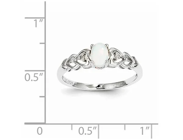 Lab-Created 1/4 Carat (ctw) Opal Sterling Silver Heart Ring A beautiful smooth opal gemstone sits in the embrace of a sleek rhodium plated sterling silver foundation in this heart ring featuring the birthstone for October. Beautifully crafted in rhodium plated 0.925 sterling silver with a Rhodium plating Finish Stone Type: Opal; Color: White; 0.28 CTW; Quantity: 1; Oval Shape; Dimensions: 6x4 mm; Lab Created; 4-Prong Setting This item ships directly from the USA. If you are not completely satisfied, simply return for a 100% refund Opal Gemstone is the Birthstone for the Month of October This Heart Ring is the perfect gift for any birthday, anniversary, holidays, thank you, thinking of you, or for any reason at all SKU: 68QGG0023OP-P