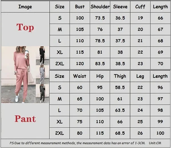 welcome to our shop! Style : Pants Suit Top Style : T-shirt Top Sleeve Length : Long Sleeve Pants Style : Pencil Pants Pants Length : Trousers Color : as shown Style Type : Street Hipster Applicable Gender : Female Product Category : Leisure Suit note 1. Product To avoid affecting your shopping experience due to size issues, please refer to the clothing size chart before purchase. 2. There may be a normal range error of 1-3 cm, because the measurement method different from the measurement tool is slightly different from the label size. Visit our store for more great items!