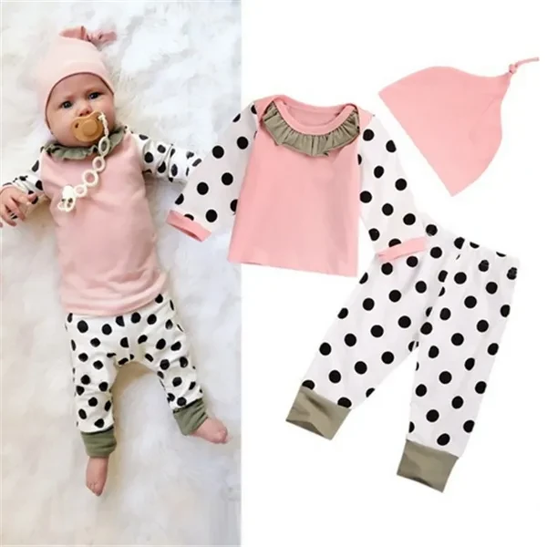 Lovely Wave Point Rompers Shirts+ Leggings Pants Baby Girls Clothing Set