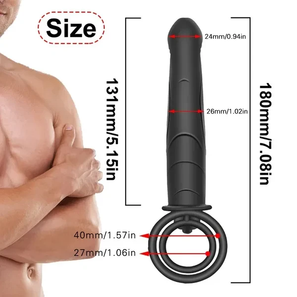 Number: C0147N Material: medical grade organic silica gel Color: black, pink, rose red Specifications: Length: 180mm/7.08in, large ring inner diameter: 40mm/1.57in, small ring inner diameter: 27mm/1.06in Product weight: 70g/2.46oz Waterproof: IPX7 Frequency: 10 frequency