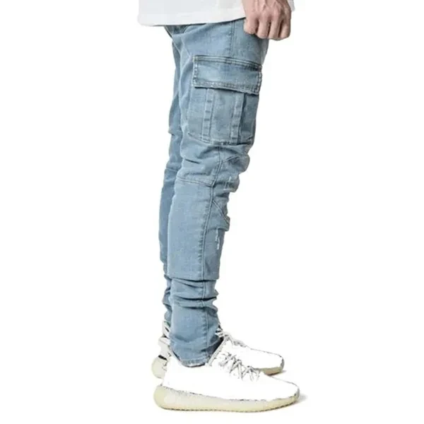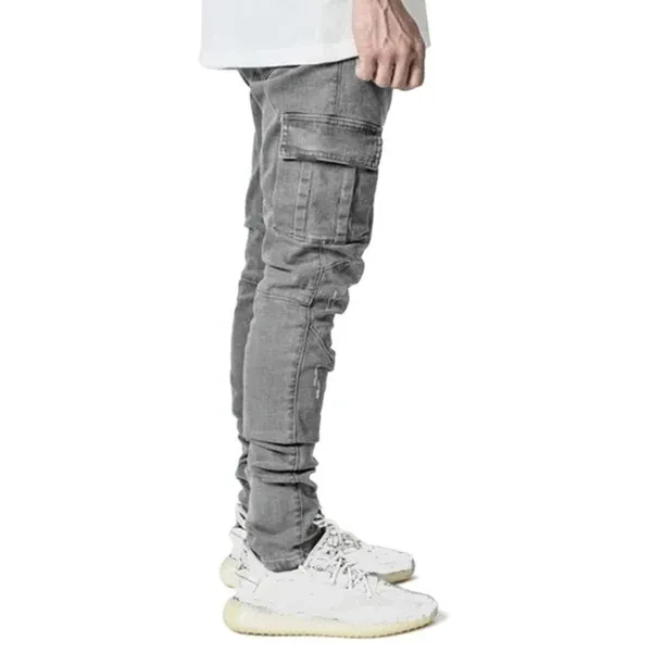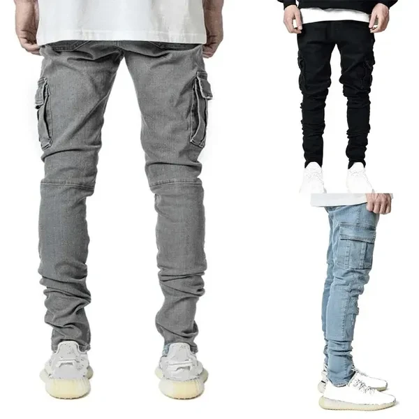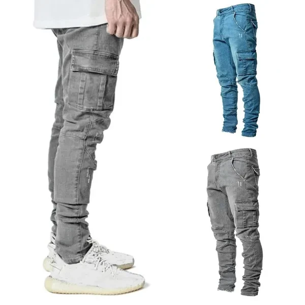 Man Stretch Jeans Ripped Skinnys Jeans Fashion Straight Leg Denims Jeans Pant Highs Waist Cargo Denims Pant