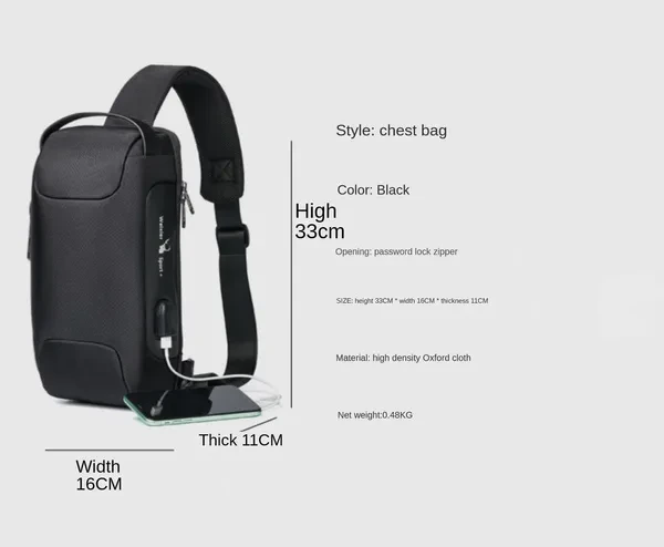 Simple and fashionable appearance. Large capacity can meet your storing need. Water-resistant fabric can protect the things in bag from water in rainy day. Burglarproof coded lock is more safe for use. Concealed card pocket in aiguillette can store transport card or other things. Breathable mesh on back brings you comfort. Reflective letter on the side make you more safe at night. Equipped USB interface for charging. Specifications: Material: oxford cloth Color: Red, Brick red(Red=Brick red),Black, Dark blue, Dark grey, Army green (optional) Item size: 340 * 170 * 80mm / 13.38 * 6.69 * 3.15in Package size: 350 * 180 * 50mm / 13.78 * 7.09 * 1.97in Package weight: 500g / 1.1lb Note: Due to the different display screen and light effect, the actual color of the item might be slightly different from the color showed on the pictures. Package List: 1 * Outdoor Bag
