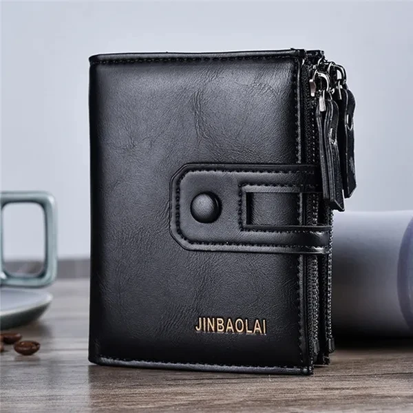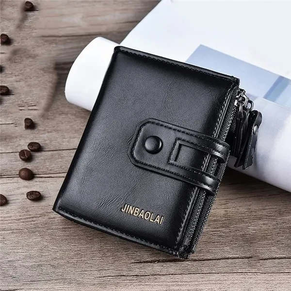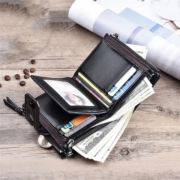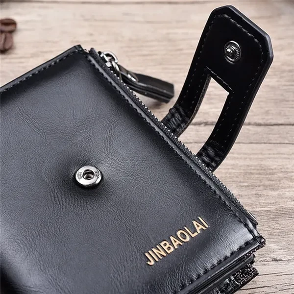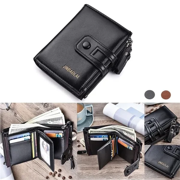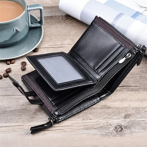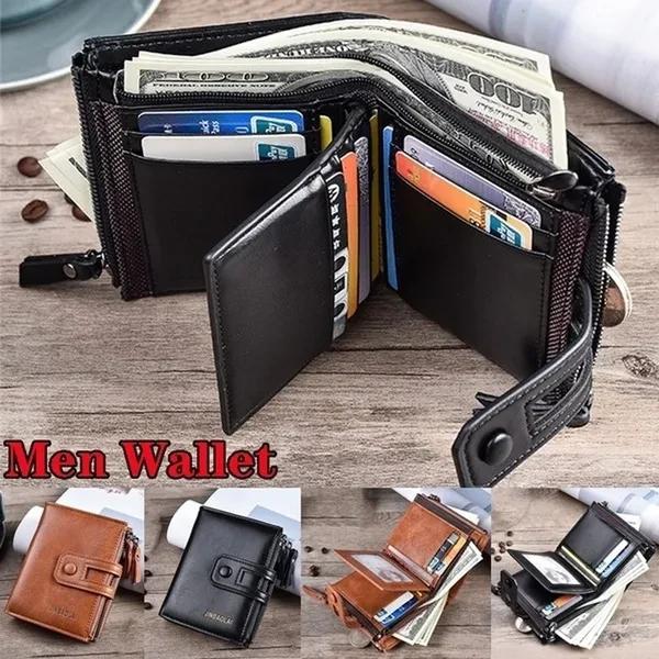 Main material: PU Leather Pattern Type: Solid for: men size:12*10*2.5cm/4.72*3.94*0.98inch color:brown,black Structure: 3 fold, there is 1 bill slot, 7 card slots, 1 photo bit, 6 inner pockets, 3 zippers slots. Features: The style is high-grade and simple, soft and comfortable leather. Package:1pcs*men zipper wallet