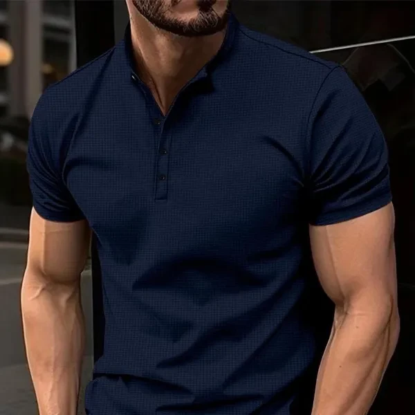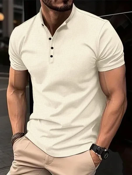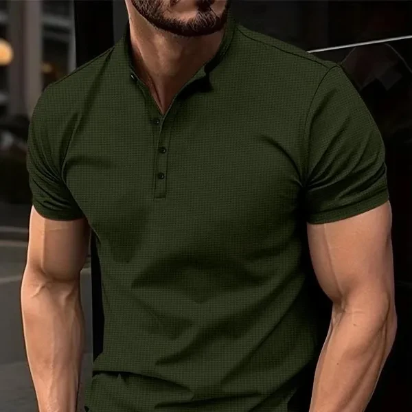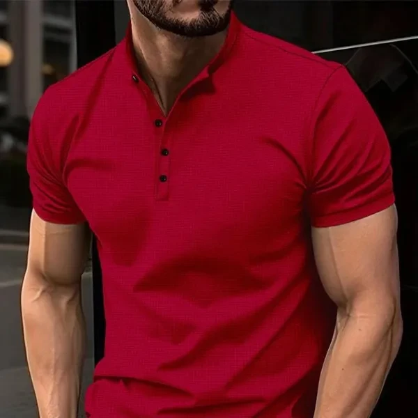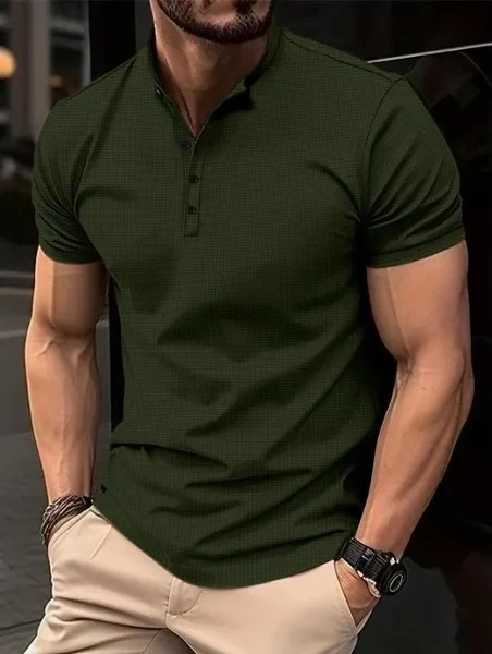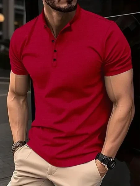 Men Summer New Short Sleeved Loose Henley Shirts Fashion Pure Color Tshirts for Men