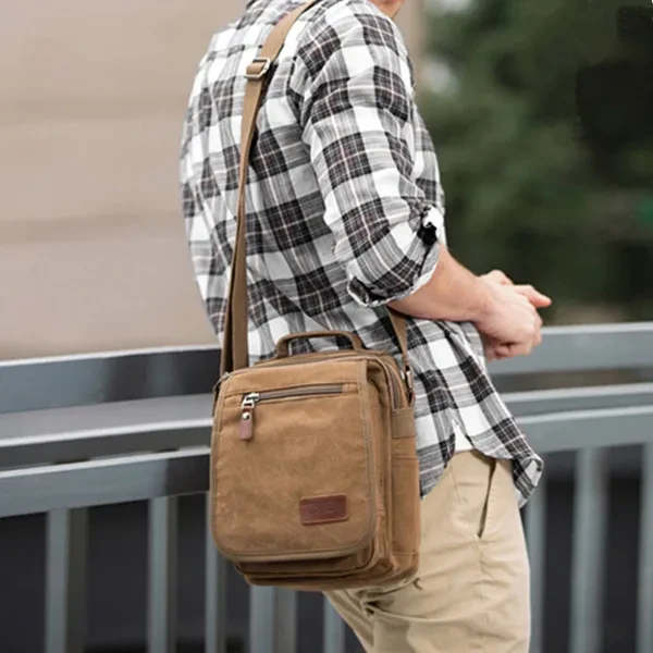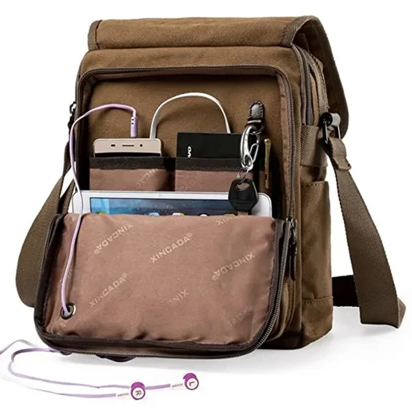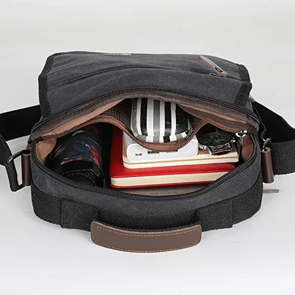 ➤Features: Main material: This shoulder bag is made of high quality cotton canvas, and decorated with PU leather and hardwares Capacity:Cell phone, mini-iPad(9"), wallet, umbrella, keys, and so on, this messenger bag is suitable for traveling, business, gift giving, outdoors and even school life Structure:Inner space of this shoulder bag:1 zipper mesh pocket and 1 zipper pocket. Outer space:Zipper closure. 1 zipper flap pocket, one zipper vice pocket, 2 side pockets and 1 zipper pocket in the back of this bag. 2 small pencil pockets, one pocket for your cell phone 1 special design for your keys in the vice pocket.
