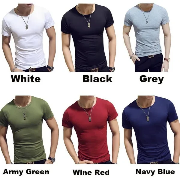 Men's Breathable O-Neck T-Shirts Silm Fit T-shirt Mens Casual T Shirt Solid Tee Men's Clothing S-3XL