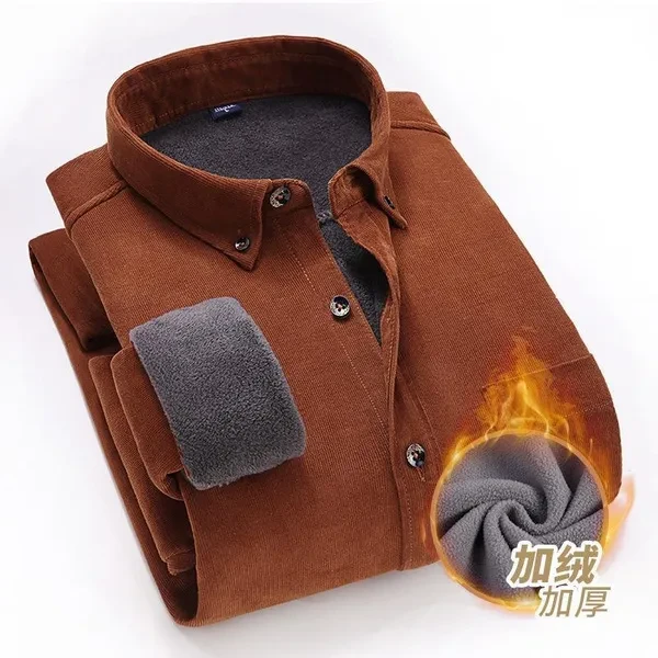 Men’s Corduroy Fleece-Lined Shirt Jacket, 100% Cotton Solid Color Casual Outerwear
