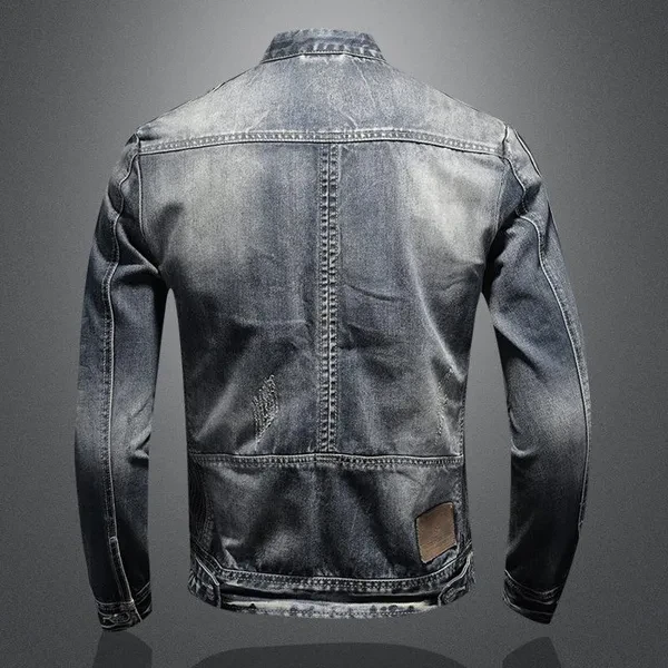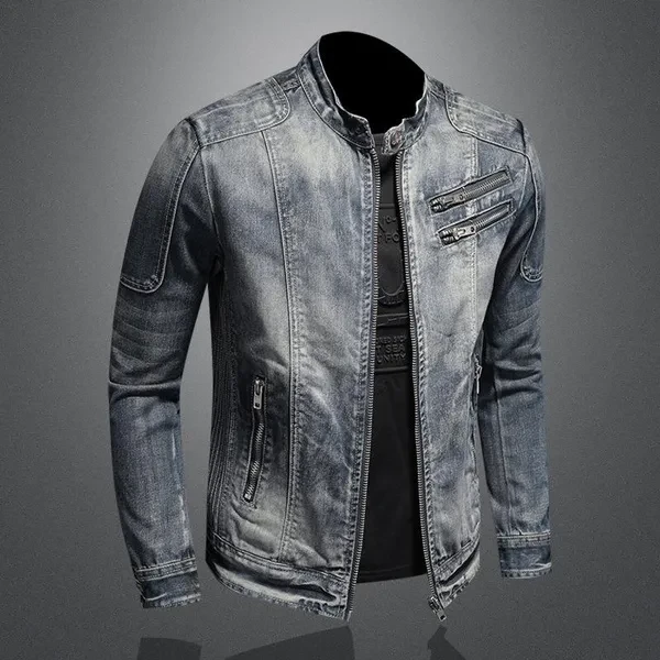 Men's Fashion Denim Jacket Casual Retro Denim Tops Stand Collar Zipper Jacket Cycling Motorcycle Suit Spring and Autumn Denim Jacket for Men