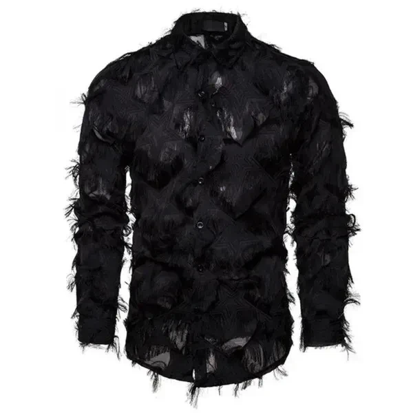 Men's Fashion Pattern Three-dimensional Feather Slim Long Sleeve Shirt