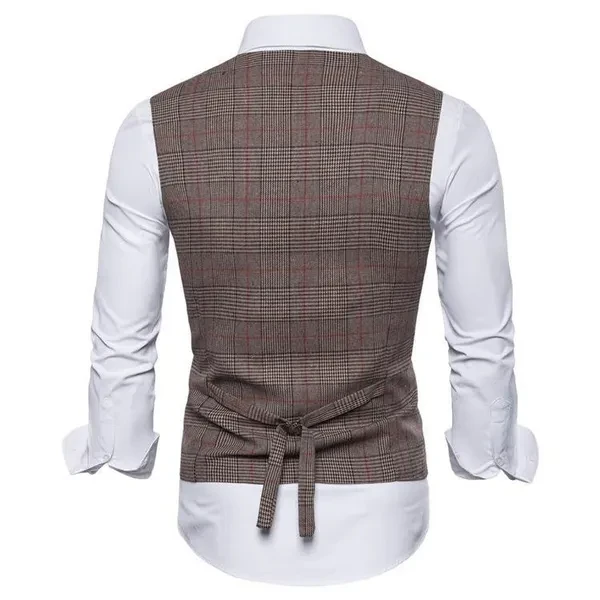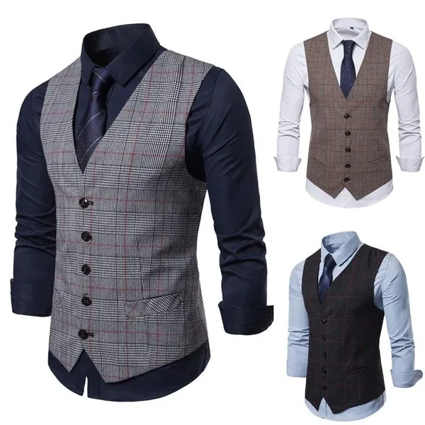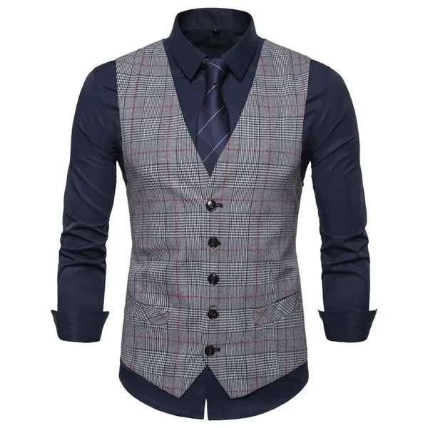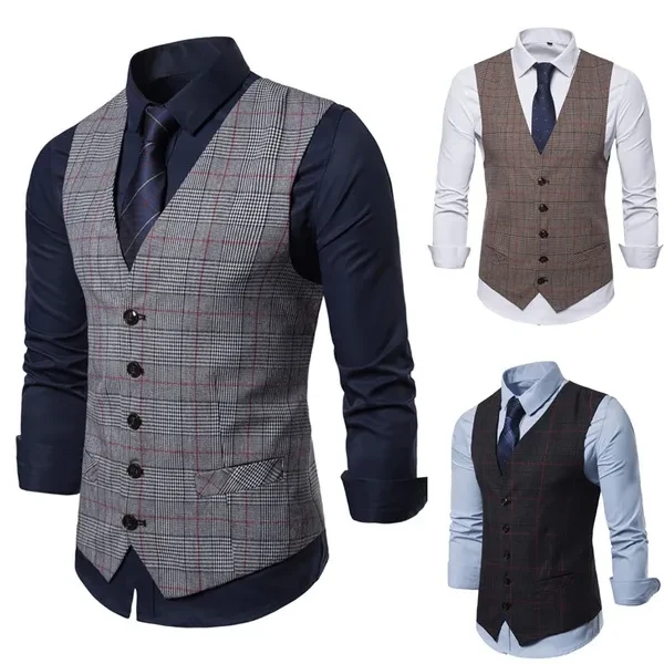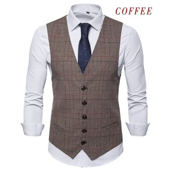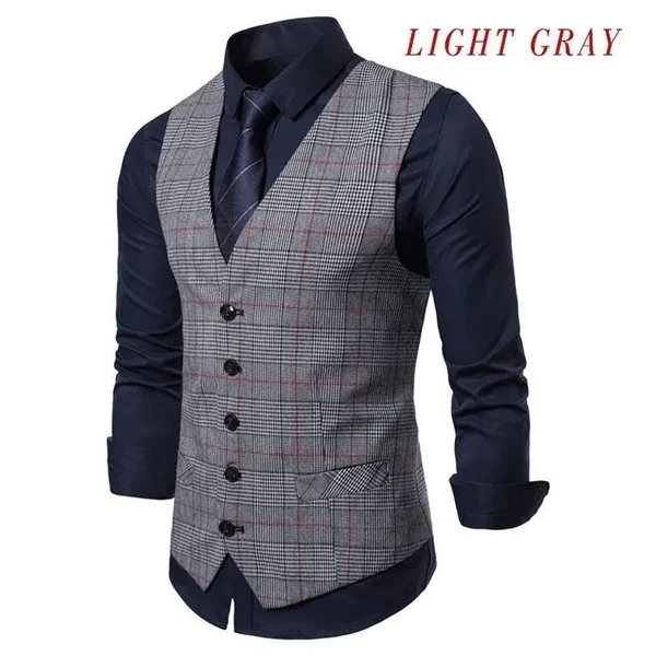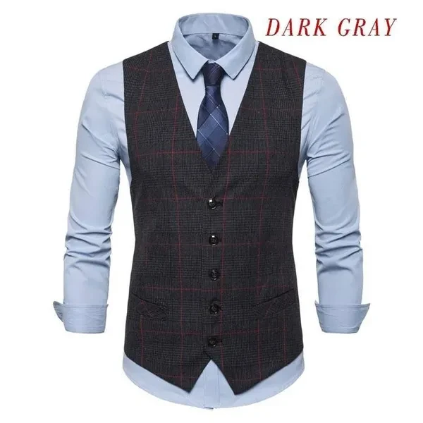 Mens Fashion Single Breasted V-neck Suit Vest Casual Business Waistcoat Solid Color Sleeveless Jacket Male Slim Fit Gilet Vest