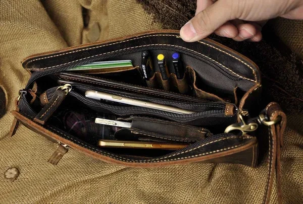 Mens Genuine Leather Business Briefcase Sling Messenger Shoulder Clutch Hand Bag Removable Wristlet
