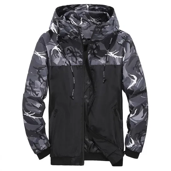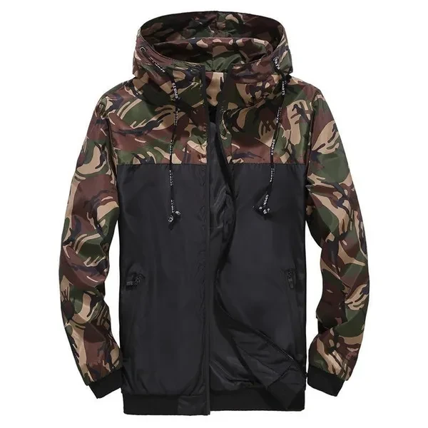 Men's Jacket Spring and Autumn Camouflage Coat Male's Casual Thin Hooded Zippered Jacket Youth Fashion Hooded Coat Plus Size S-5XL