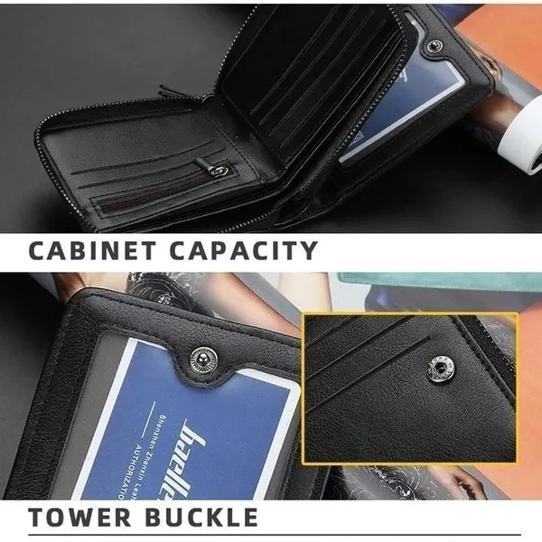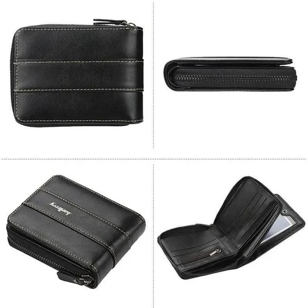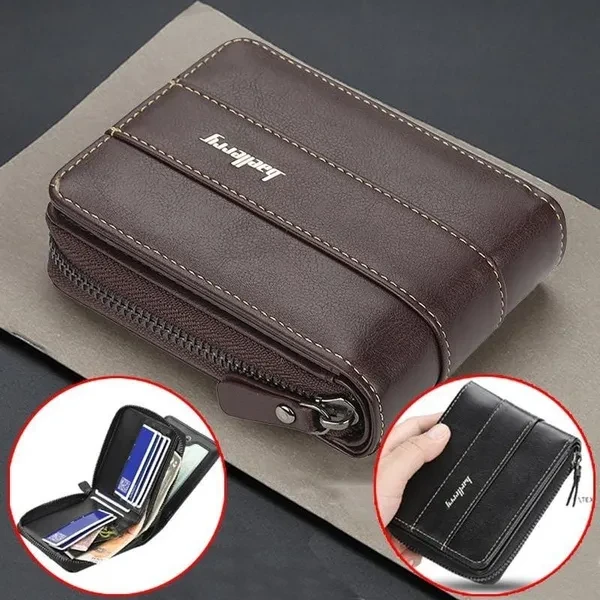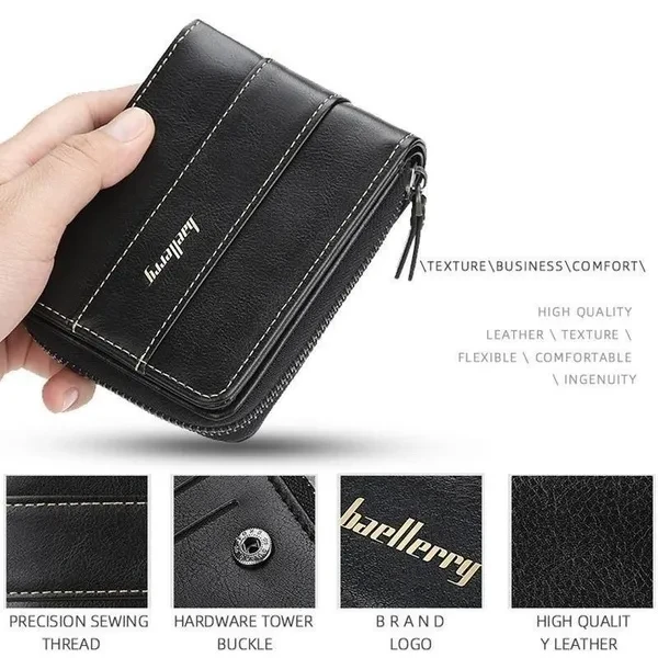 Men's Leather Wallet Short Wallet Casual Zipper Coin Purse Male Card Holder