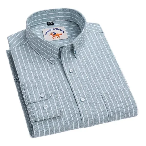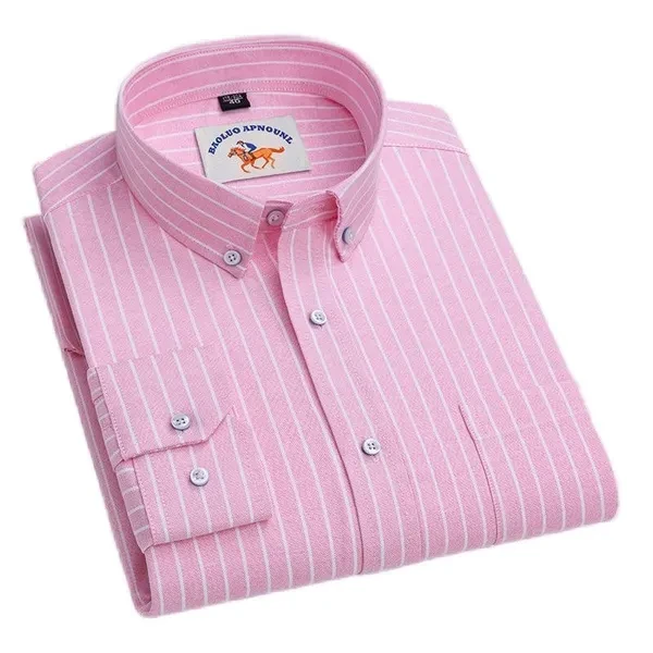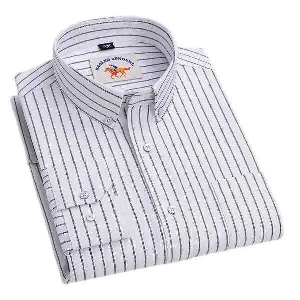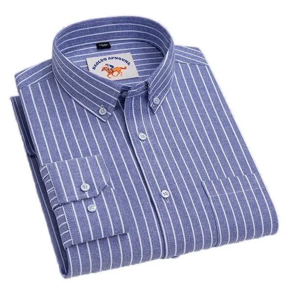 Mens Oxford Shirts Formal Business Long Sleeves Strips Cotton Casual Dress Shirts Tops