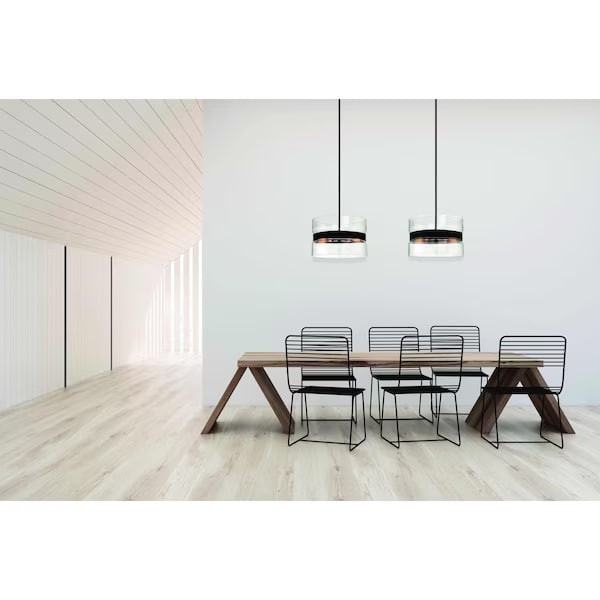 Midnight La 60 Watt 6 Light Matte Black Pendant with Clear Glass Dual Shade