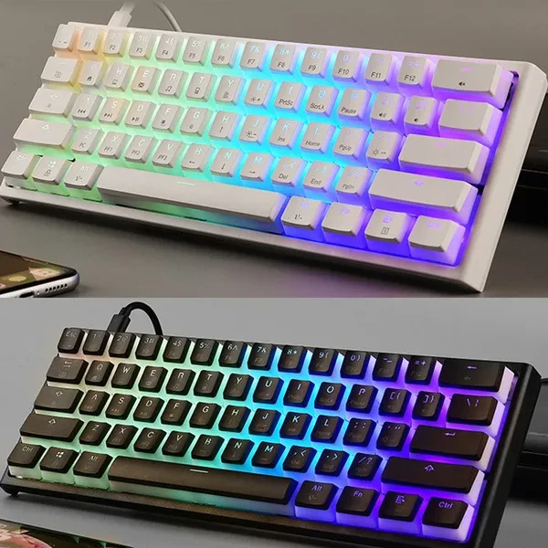 MK25 USB Wired 60% Compact Mechanical Keyboard 61 Keys Small Portable Gaming Office Keyboard for PC Gamers DUC