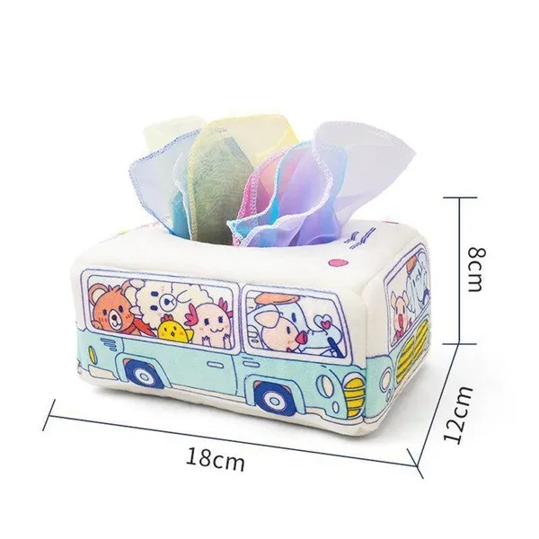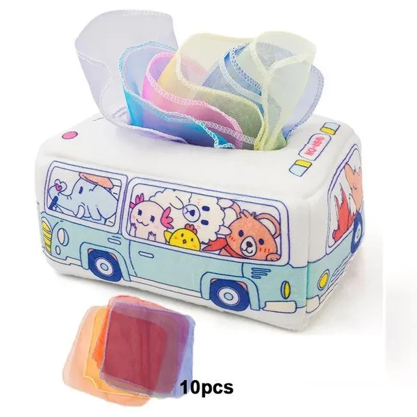 Montessori Toys for Baby 0-18 Months Infant Toddlers Tissue Box Colorful Soft Sensory Toy Untearable Tissues for T