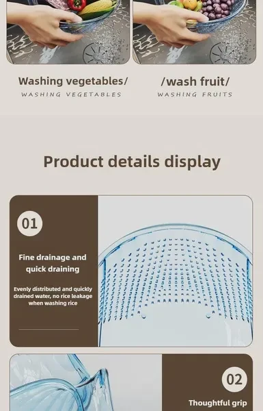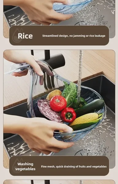 【Versatile】: Rice washer strainer bowl can hold rice, fruit, vegetables, small grains, barley, bean, pasta, spaghetti and more, also as fruit and vegetable container. The colander strainer bin can be used for draining, straining, washing, and storing 【Premium Material】: Rice washing filter strainer basket made of PP material, smooth, anti deform, and great durability 【Easy Drainage】: Fruit drain bowl with leaning side drainage small holes help prevent grains and rice from falling through. Easily shaking out extra water, and pour into your cooking pot 【With Handle】: Food strainer colander had handle on the side, comfortable, non slip, light in weight 【Easy to Clean】: This kitchen colander is so easy to clean, just rinsing with water Specification: Material: PP Size Chart: 29.5cmx21cmx17.5cm/11.61inchx8.27inchx6.89inch Package Includes: 1 Rice Washing Filter Strainer Note: Please allow slightly errors due to manual measurement and different monitors.