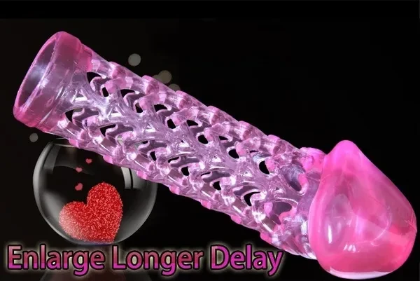 Net hole shape male extension sleeve reusable condoms for men, realistic extender sleeve Color : ship random, don't support color choice With good elasticity, fits for all.