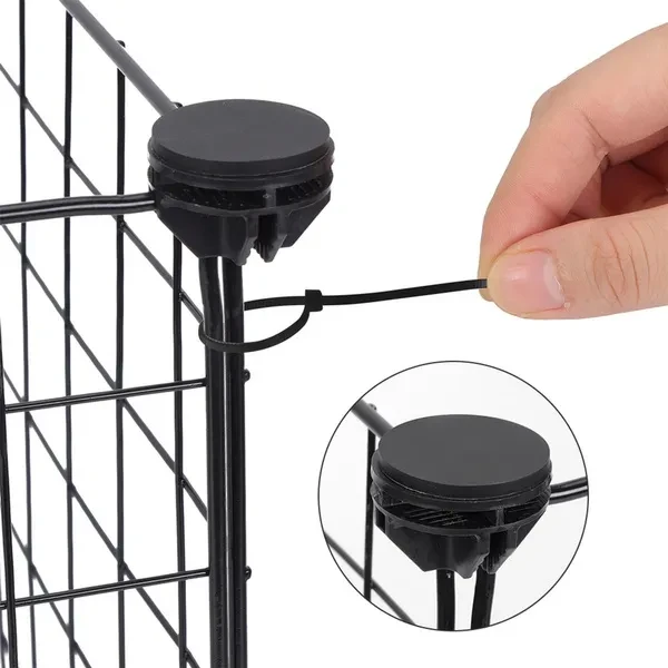 Features: 1. Easy to assemble: easy to assemble with instructions and includes mallet.Use cable connections for more functions, such as doors or ramps 2. For various animals: hedgehogs, hamsters, guinea pigs or rabbits, they can have fun in this fence.It's easy to look at them from any Angle 3. DIY expandable: make different shapes of qualified translucent white material panels to present different combinations into the actual room layout 4. Green and durable products 5. Strong, not easy to fall apart 12pcs Package Includes: 12 x Metal Panels 28 x Black ABS plastic connector, 1 x Wooden hammer 1 x Instructions 24pcs Package Includes: 24pcs metal plates 48pcs zip ties 12pcs non-slip mat 48pcs connectors 1pc mallet 1pc user manual 36pcs Package Includes: 36pcs metal plates 72pcs zip ties 12pcs non-slip mat 72pcs connectors 1pc mallet 1pc user manual Specifications: 1. Material:Metal panels 2. Color: Black 3. Product Size: (28 x 56 x 14)" / (71 x 142 x 35.5)cm (L x W x H) 4. Weight: 6lb / 2.7kg Note: 1.When receiving the goods, please confirm the product according to the listing of instructions. Once you find Less pieces, please provide relevant pictures to contact us. We will deal it in the time. 2.Please install goods with the instruction manual. 3.It is recommended that the installation should not be too tight to adjust easily. After the structure is installed, firm the interface for more stability.