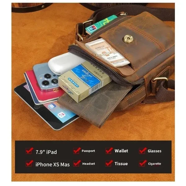 Exterior : Flap Pocket Interior : Interior Slot Pocket,Cell Phone Pocket,Interior Zipper Pocket,Interior Key Chain Holder,Interior Compartment Hardness : SOFT Closure Type : zipper Pattern Type : Solid Gender : MEN Style : vintage Lining Material : POLYESTER Main Material : Genuine leather Shape : Box