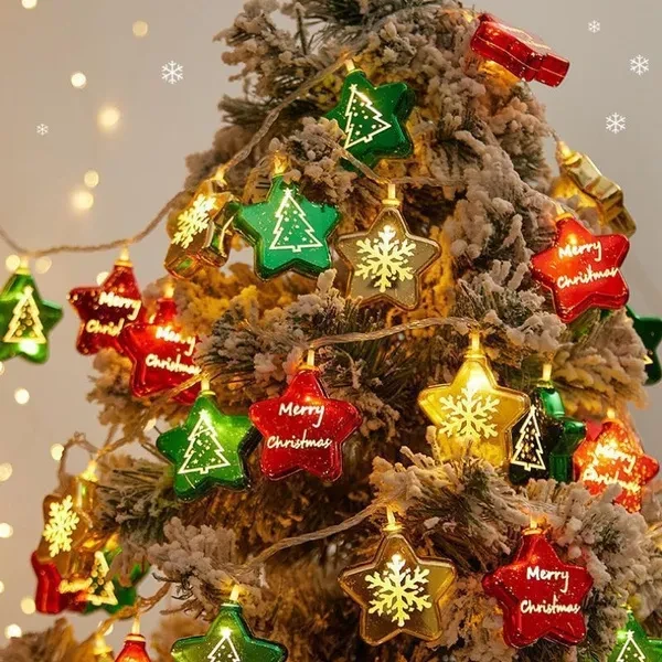 Name: LED Christmas Atmosphere Decorative Light String Power supply: battery type Material: Plastic+LED Beads Color: Warm White Usage scenarios: Christmas, parties, stores, shopping malls, home, etc