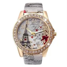 New Fashion Effiel Tower Heart Printed Wristwatch Quartz Watch Gifts