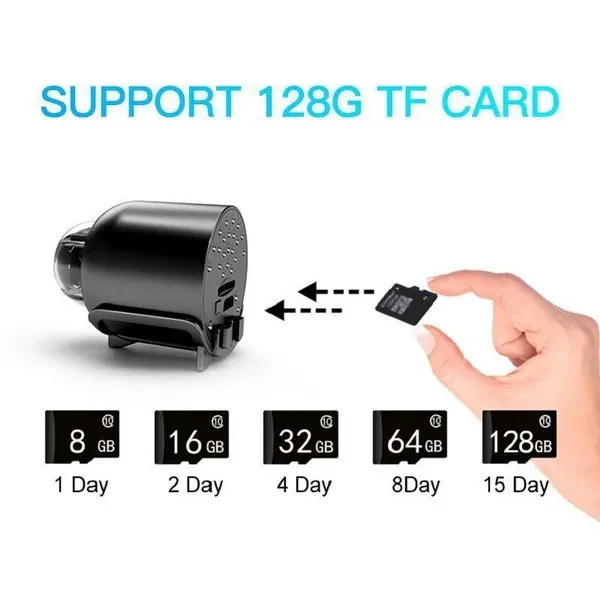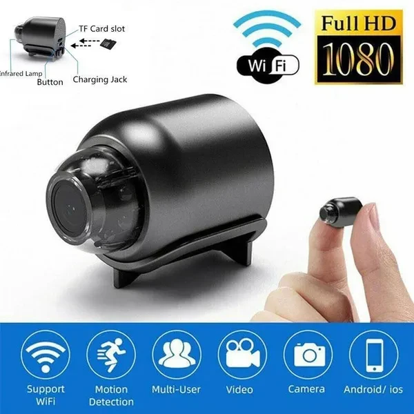 HD Support: 720 / 1080px (Full HD) Model: X5 Mini Camera Packaging: yes Built-in memory size: No Memory card type: none Sensor Technology: CMOS Product Name: Miniature Camera Packing size: 30*40*30mm HD Support: 1080P (Full HD) Effective distance: 8 meters Infrared light irradiation distance: 2m Resolution: 1920*1080P Packing weight: 50g Feature 1: Night Vision Feature 2: Wireless Feature 3: Timing recording Feature 4: Maximum support for 128G memory card(notinclude) Feature 5 : 720 / 1080P (Full-HD) support Frame rate: 30FPS   Note: The camera has no built-in battery and needs to be connected to a power source to work   feature: Size: 3.8x3x3cm Colour: Black Recording video format: AVI TF card: support 8GB-128GB (the camera does not include TF card) Lens: Wide angle 160 degrees Power supply mode: mobile power supply, household power supply. Resolution: 1920*1080P Operating system: android/ios Function: motion detection, remote viewing, alarm recording, loop recording, multi-user viewing.  packing list: 1 * Camera 1*Camera clip 1x charging cable 1 * Product Manual 1*Packing box  night vision without lights ● The new generation of super night vision does not illuminate infrared lights. ● Built-in 8 night vision light, which can be operated on the APP at any time. Motion detection alarm ● Camera supports intelligent mobile alarm function. ● When the thief enters the monitoring range or there is an object moving, turn on the quality measurement function of the monitoring mobile phone camera, and the system will automatically send APP alarm information to your mobile phone to remind you. ● You can ask to watch real-time monitoring when the mobile phone is turned on. It supports 4 kinds of video definitions. ● The listening effect is clear and the voice test is saved. ● The sound reproduction is real. And the detailed recording is clear. Help record important sound tests View photos remotely Whether you are working or walking, you can take out your phone and open the app for real-time monitoring Wireless wifi remote monitoring You can view live video streams from anywhere in the world once connected Remote/IP mode The cameras clear voice hearing hearing effect is clear, and the voice test is saved. ● The degree of sound reproduction is real. And the detailed recording is clear. Help you record important evidence. Universal USB interface, plug-and-play housekeeping, shop-watching, remote mobile phone, instant-on AI humanoid recognition, real-person alarm, and network-based AI logic humanoid recognition can accurately identify, compared to traditional motion detection. Alarm according to picture changes (greatly reduce false alarms such as wind, grass, animals, etc.) ● Real-time sharing Multi-user user sharing Support main account can add multiple sub-accounts to watch videos, the whole family can add Support multiple accounts to watch online at the same time Support 128G TF card installation only Download the app in three steps 2. Turn on the camera 3. Successfully added Wifi Mini