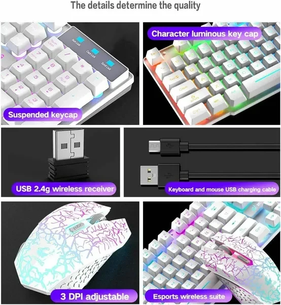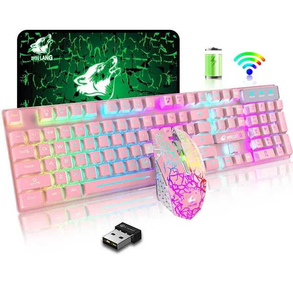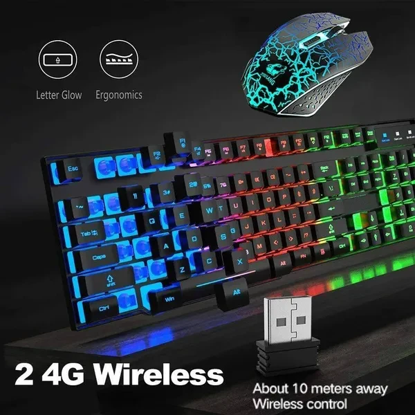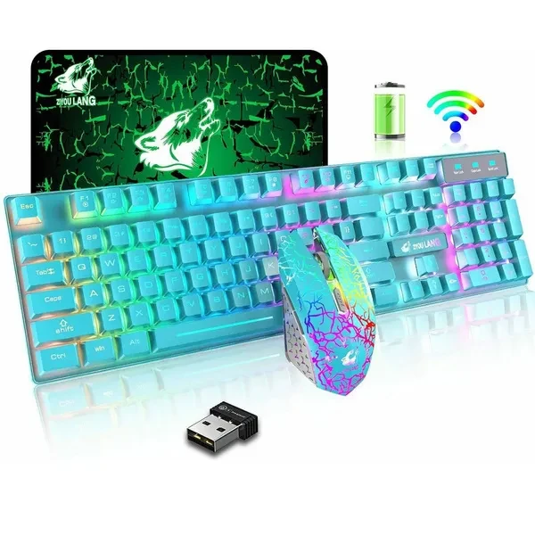 New Mechanical Backlit Gaming Keyboard Mouse Set Wireless USB Rechargeable 2.4G RGB LED