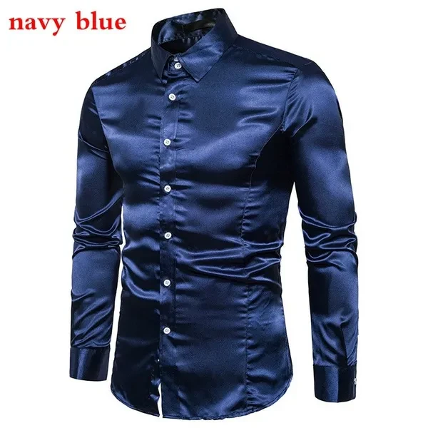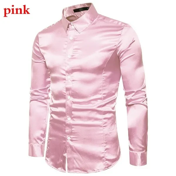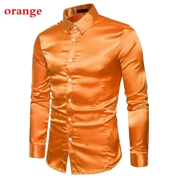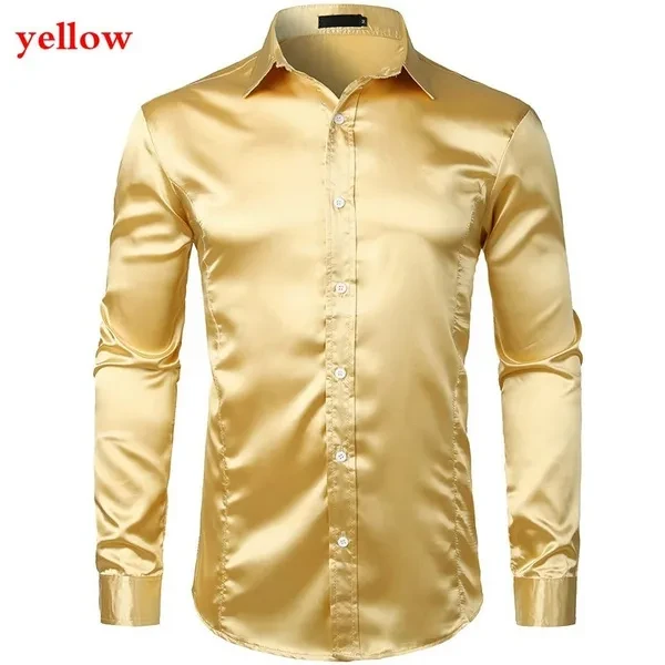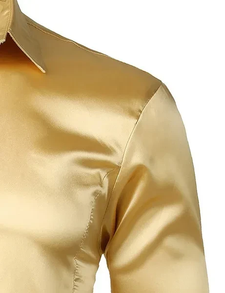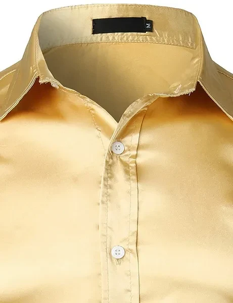 2.Satin Like Feel Silk Fabric/Soft decent Slim Fit/Bright Pure Color/Spread Collar
