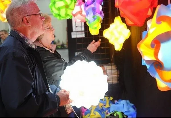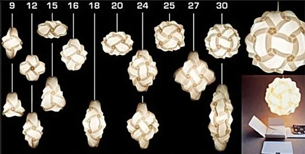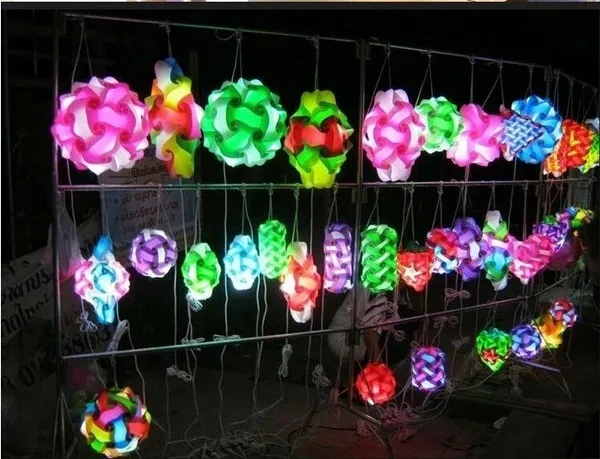 New 30Pcs/set Lighting Shade DIY IQ Puzzle Lamp Shade Pendant Fixture Modern Home Decor Ball Length :30cm Ball Width : 30cm Card size: Length 17cm Width: 9cm Hickness: 0.5mm Pieces : 30 Color : White, Green, Sky blue, Rose red, Orange, Yellow, Red, Purple Do Not include the light Uses : home decoration to ceiling lighting,floor lamps, table lamp, etc… You can make shades by 6 piece/8 piece/9 piece/12 piece/15 piece/16 piece/etc… You can be creative,DIY all kinds of shades,surprise yourself by your creativity. it's easy and quick when you know the technique. The modules are made of translucent polycarbonate corrugated card (PVC), which is unbreakable and washable. When assembled to an interlocking shape, it can be used to shade a standard bulb and socket. You should use energy-saving light bulbs for this lamp. They are entirely hidden inside the lamp and might be good to avoid overheating of the PVC.