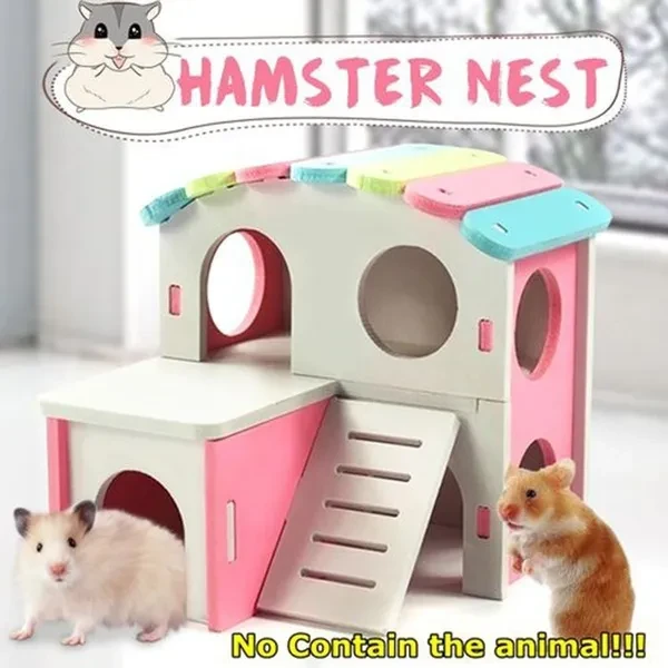 New Pet Castle House Toy Viewing Deck Ladder Pet Products 1 PC Hamster House Hamster Nest Wooden Seesaw