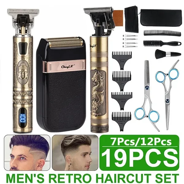 New Professional Barber Hair Clipper Rechargeable Electric T-Outliner Finish Cutting Machine Beard Trimmer Shaver Cordless Corded