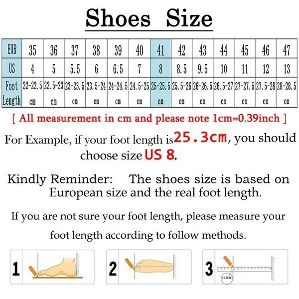 Welcome to our shoe store, thank you for buying men's fashion shoes Features: breathable upper, comfortable lining, non slip sole, fashionable appearance Color: black, white, yellow, orange, grey Occasion: outdoor, sports, leisure, running Toe style: round head Sole Material : rubber Size: 39-44 Attention, please refer to our size chart and choose the right shoes before ordering. Thank you. ------------------------------Size Chart---------------------- CN/EU Size 39 = Foot Length 240-245mm = US 6.5 CN/EU Size 40 = Foot Length 245-250mm = US 7 CN/EU Size 41 = Foot Length 250-255mm = US 8 CN/EU Size 42 = Foot Length 255-260mm = US 8.5 CN/EU Size 43 = Foot Length 260-265mm = US 9.5 CN/EU Size 44 = Foot Length 265-270mm = US 10