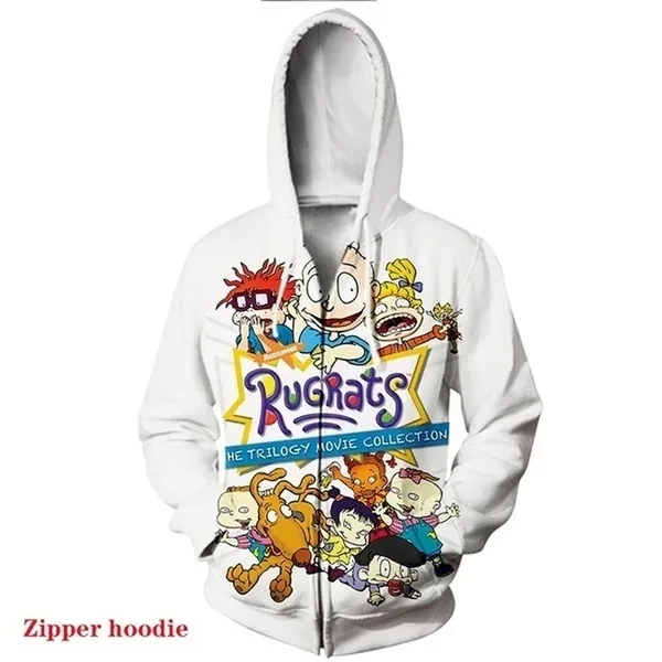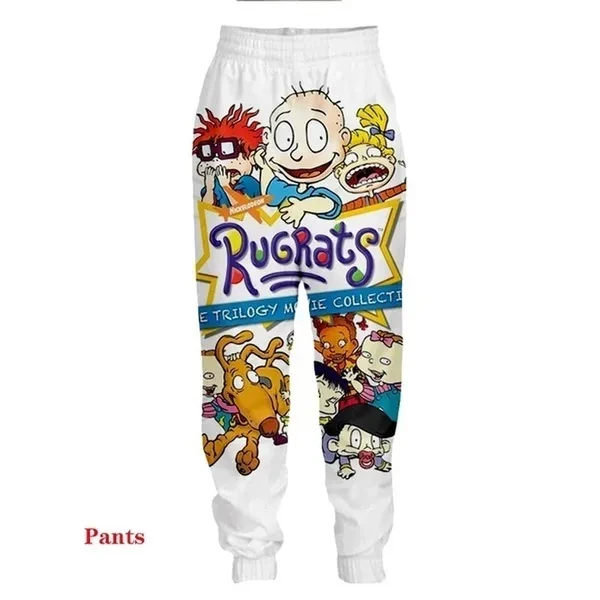 New Sports Suit Cartoon 90's Rugrats Men's and Women's Set of Casual Street Fashion Zip Hoodie and Jogging Pants