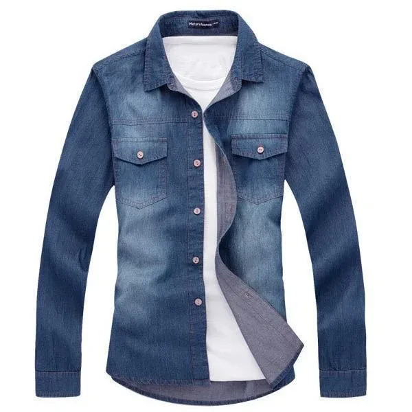 New top Fashion Mens Casual Denim Shirt Luxury Stylish Wash Slim Fit Shirts