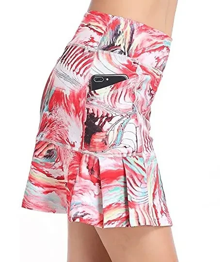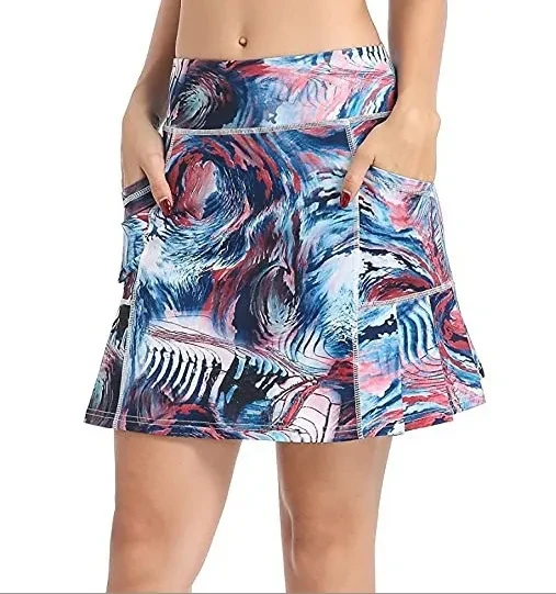 New Women's Athletic Golf Skirts Running Workout Fitness Tennis Skort Two Layers High Waist Sport Skorts with Pocket