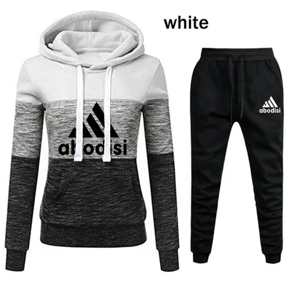 NEW Womens Printed Tracksuit Tri-color Hoodie and Pants Suits Casual Sportwear S-4XL