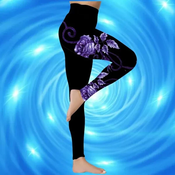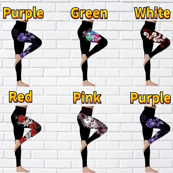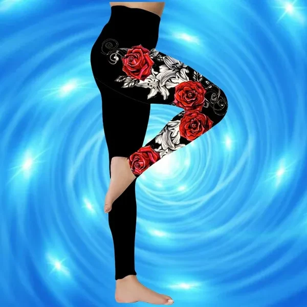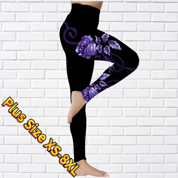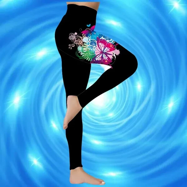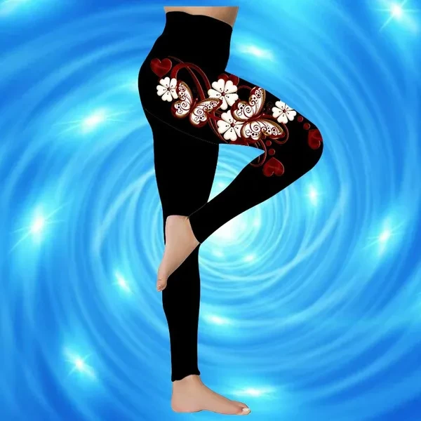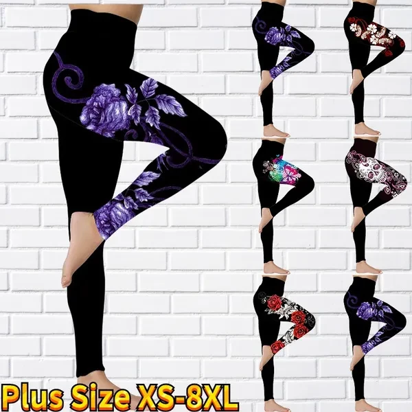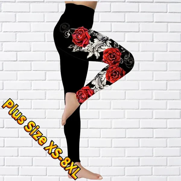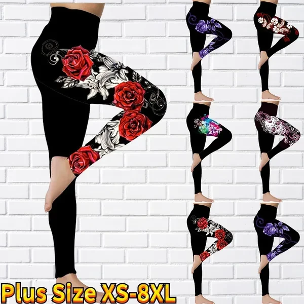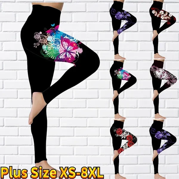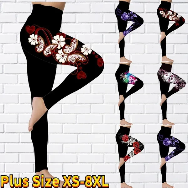 New Women's Trousers Yoga Pants Rose Butterfly Pattern Printed Yoga Pants Casual Sports Leggings Fitness Pants Trousers Elastic Leggings Outer Wearr Plus Size XS-8XL