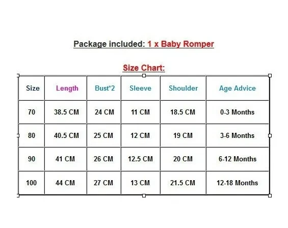 New Fashion Main Color: As the Picture Material: Cotton Blend Attention plz: If your kid is chubby, we recomend choosin g a larger size, thanks. Please kindly refer to your kids actual height and the size chart before buying/bidding. Thanks. Package included: 1 x Baby Romper