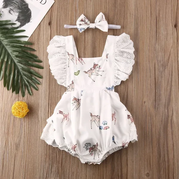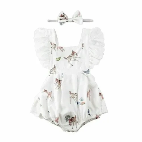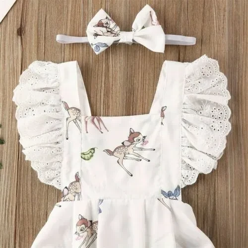 Package included: 1x Romper +1x Headband High quality and Brand new 100% Main Color: As The Picture Show Material: Cotton Blend Size Chart: (cm) Size Age Length Bust*2 70 3-9 Months 32 21 80 9-12 Months 36 22 90 12-18 Months 40 23 100 18-24 Months 44 24