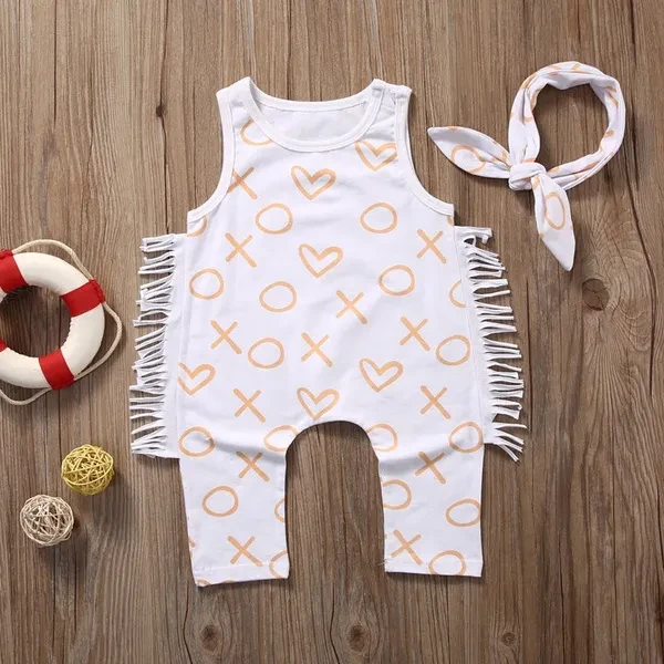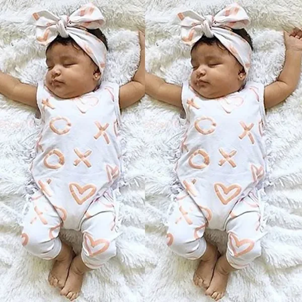 Newborn Kids Baby Girl Bodysuit+Headband Cotton Jumpsuit Romper Outfits Clothes