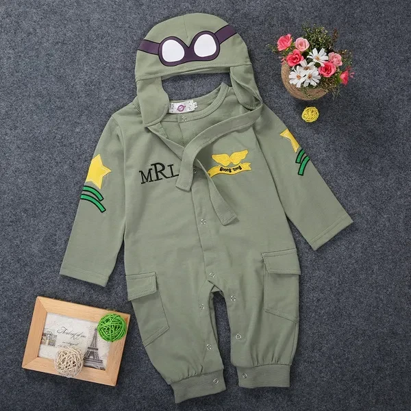 Pilot Romper Jumpsuit + Cap Army Green Set --- Skin-friendly, will not easily deformation, pilling, nice to baby's delicate skin Size chart:(cm/inch) Size(cm) 80 Length: 53 Bust: 60 Sleeve: 28 Age: 6-12 Months 90 Length: 56 Bust: 62 Sleeve: 30 Age: 12-18 Months 100 Length: 59 Bust: 64 Sleeve: 32 Age: 18-24 Months Size(inch) 80 Length: 20.87 Bust: 23.62 Sleeve: 11.02 Age: 6-12 Months 90 Length: 22.05 Bust: 24.41 Sleeve: 11.81 Age: 12-18 Months 100 Length: 23.23 Bust: 25.20 Sleeve: 12.60 Age: 18-24 Months Friendly Tips: 1. Please kindly allow 2-3% difference according to manual measurement. 2. Please check the measurement chart carefully before you buy the item. (1 inch = 2.54 cm) 3. Please note that slight color difference should be acceptable due to the light and screen. Thanks. Specification: Name: Pilot Romper Jumpsuit + Cap Army Green Set Gender: Baby boys Material: Cotton blend Sleeve length: Long sleeve Pattern: Print Size: 6-12M/12-18M/18-24M Package Contents 1x Jumpsuit + 1x Hat Promise If the product has any quality problems, please feel free to contact us, we will help you solve the problem as quickly as possible.