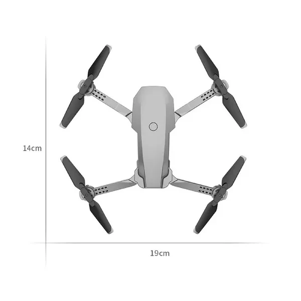 size: Folding: 7.5*12.8x5cm Expand: 14*195cm Flight performance: Flight time: 12 minutes Flying distance: 100 meters Remote control battery: 3x1.5V "AA" battery Body battery: Charging time: about 60 minutes Body battery capacity: 600mAh lithium battery Product Features The fuselage is folded, one key to fly, one key to land, fixed height hover, air pressure fixed height product function WF connection, APP control, face recognition photo/video, one key return, headless mode, trajectory flight, voice control, speed Regulation, real-time transmission package: 1*folding drone 1*Instruction