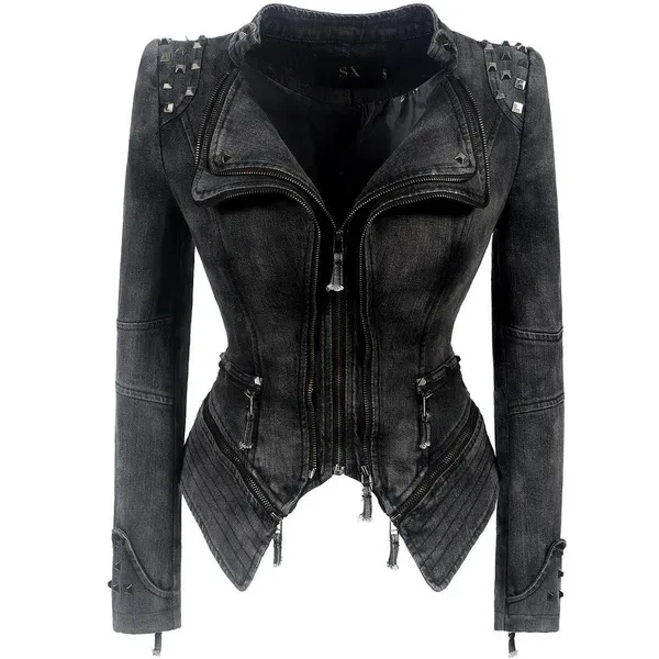 The jacket is made of 90% high purity cotton denim and lined with high quality polyester fabric. The shoulder cuffs and waist are decorated with rivets. The zipper design allows the hem to be disassembled freely, the cuff can be adjusted freely, fashionable and Slim, showing unique aesthetic feeling and perfect body. The short design makes you more crisp. The long sleeves and slim silhouette of the straight tube set off the slim figure and sexy curve. Black style is Pu artificial leather jacket, other styles are denim jacket, please purchase carefully. When choosing goods, you can choose the right size in the size reference table of the additional pictures, or you can ask for help from us.