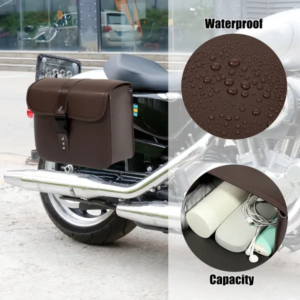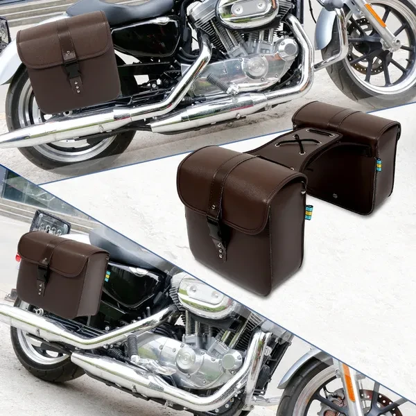 Pair Motorcycle Saddlebag Side Tool Bags Cycling Luggage Bag Waterproof Quick Release Buckles Brown